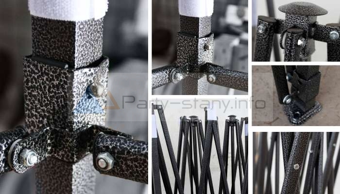 Konstrukce tohoto párty stanu je z odlehčené oceli se šroubovanými spoji.
