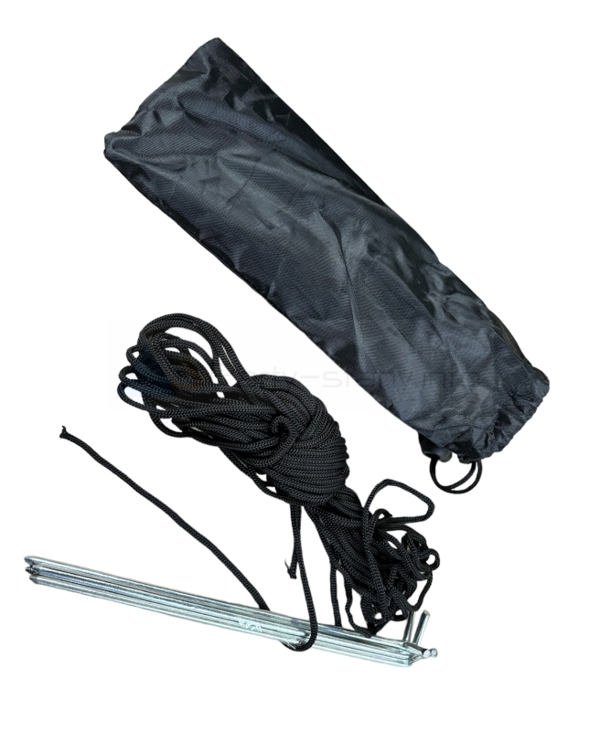 Balení obsahuje: konstrukci, střešní plachtu, 3 samostatně odnímatelné bočnice, ochranný obal na konstrukci, kotvící sada (4x kolík a šňůra).